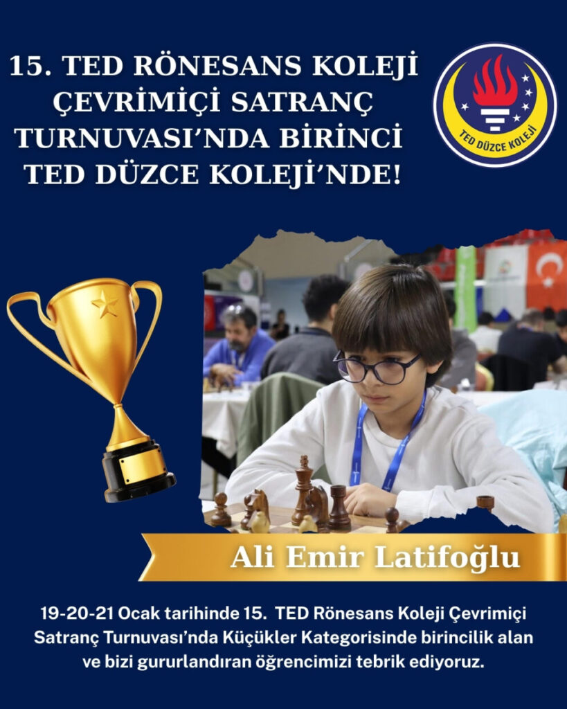 19–20–21 Ocak tarihlerinde düzenlenen 15. TED Rönesans Koleji Satranç Turnuvası’nda, Küçükler Kategorisi TED Birincisi olan öğrencimiz Ali Emir Latifoğlu’nu yürekten tebrik ediyoruz. TED Düzce Koleji olarak; […]