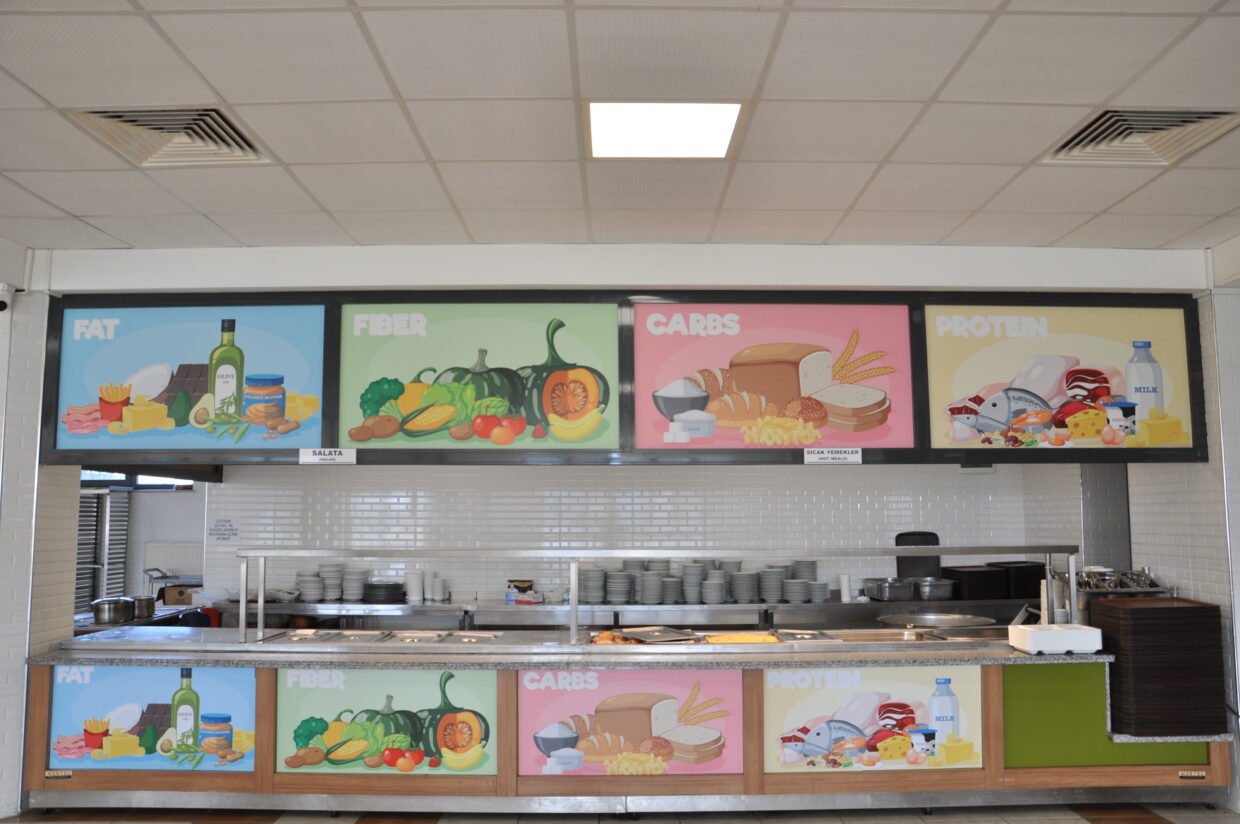 Yemekler diyetisyen kontrolünde hazırlanmakta; protein, karbonhidrat, vitamin ve mineralleri dengeli şekilde içermelerine özellikle dikkat edilir. Öğle yemeklerinde öğrencilerimize alternatifli yemekler sunulur; salata bar çeşitleri ile öğrencilerimizin sağlıklı beslenmelerine katkı verilir.