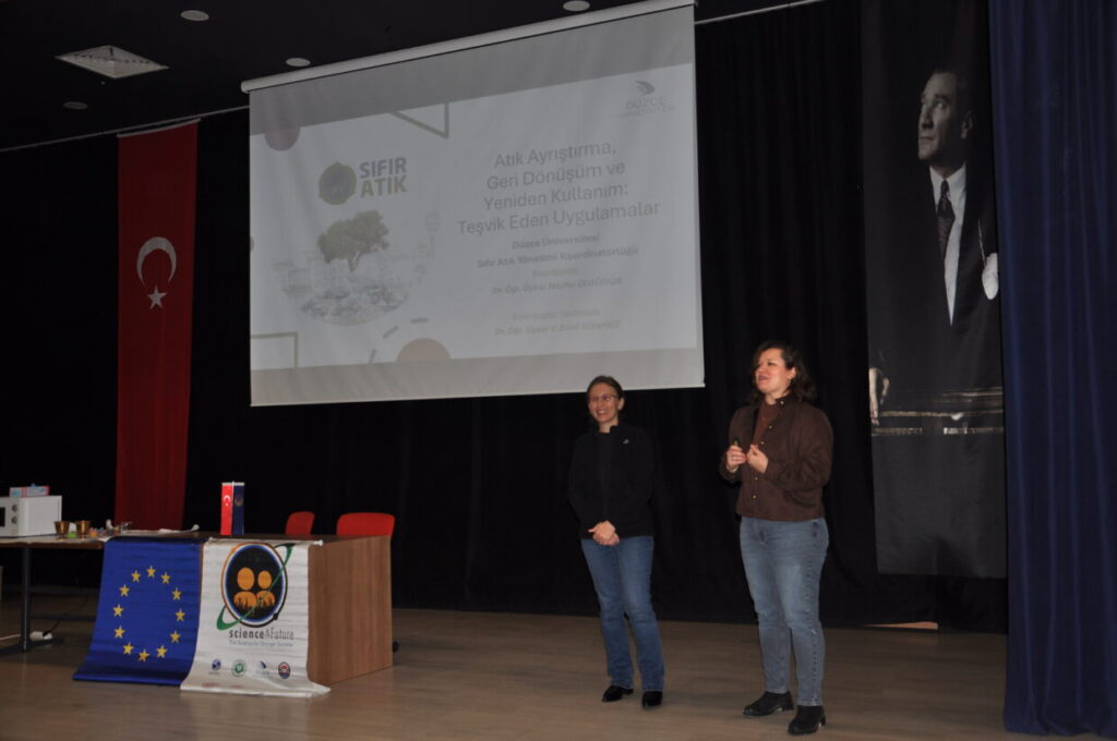 Düzce Üniversitesi’nden Dr. Nilüfer Ülküdür ve Dr. Zülal Sönmez’in katılımıyla öğrencilerimize “Sıfır Atık” konusunda bilgilendirici ve interaktif bir sunum gerçekleştirildi.